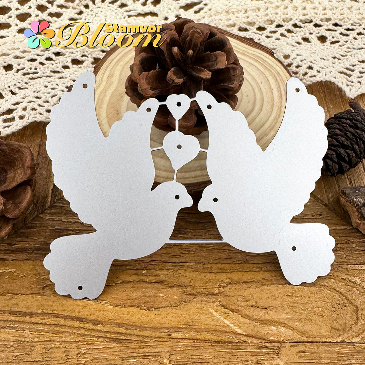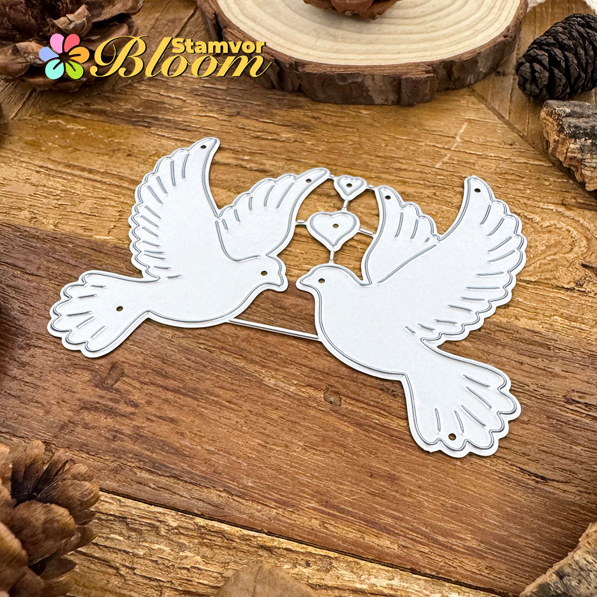 Cutting Dies. This die creates Original Lovely Valentines Day Pigeons Love Birds, allowing you to show your gratitude in thoughtful cards. With a high-quality steel design, it can cut through most paper, which will help you create beautiful crafts.