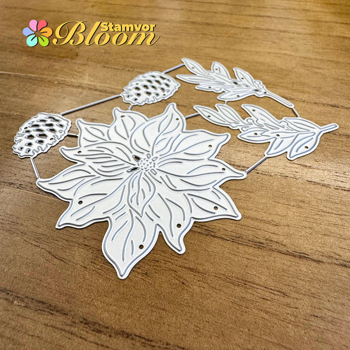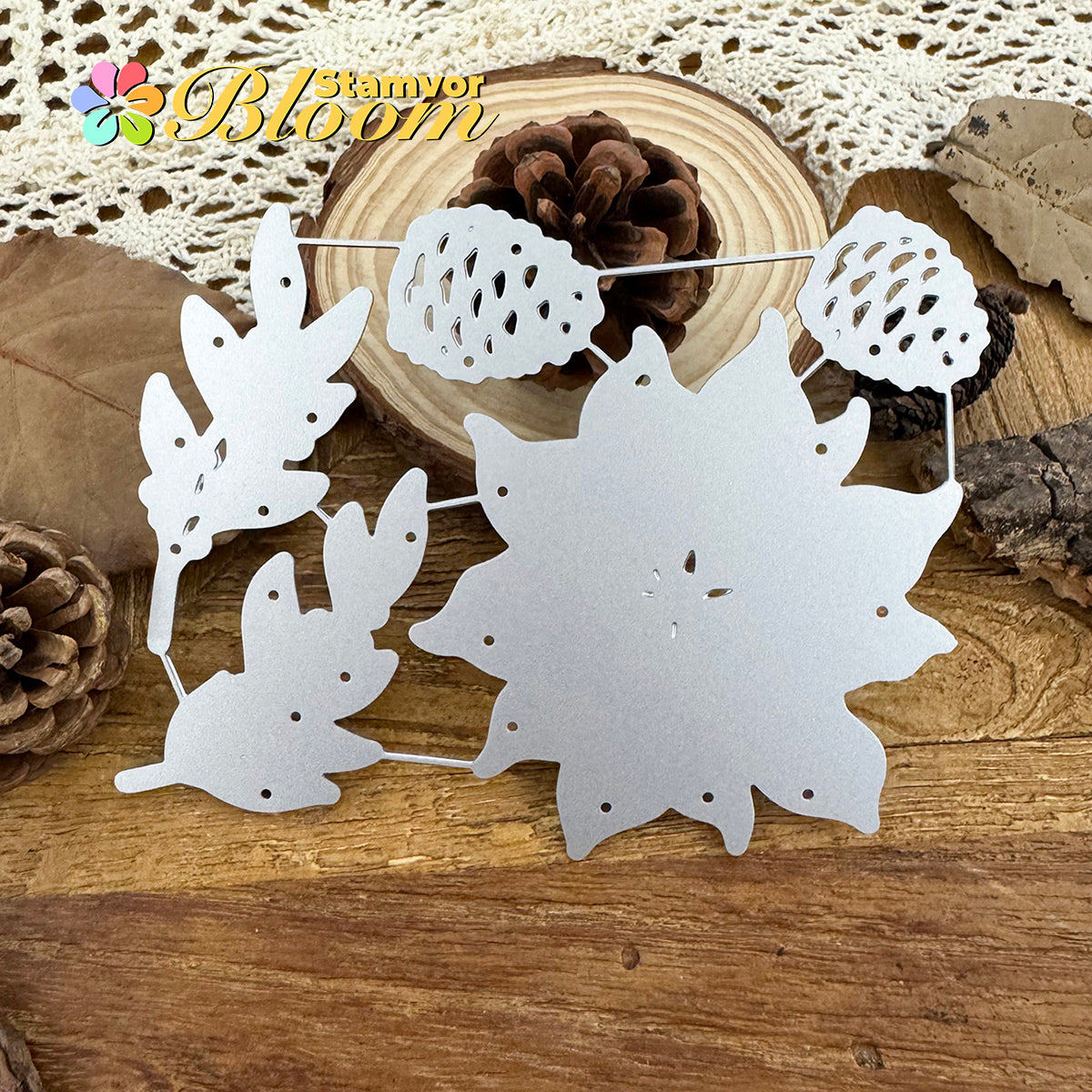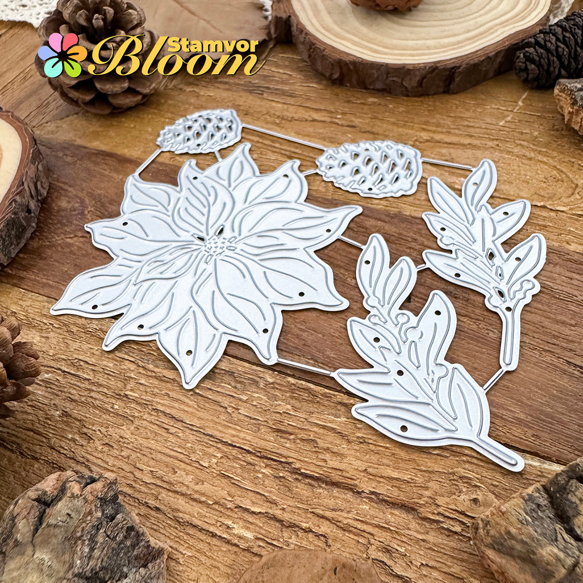 Cutting Dies. This die creates Original Lovely Beautiful Christmas Flowers and Leaves Branches Pines, allowing you to show your gratitude in thoughtful cards. With a high-quality steel design, it can cut through most paper, which will help you create beautiful crafts.
