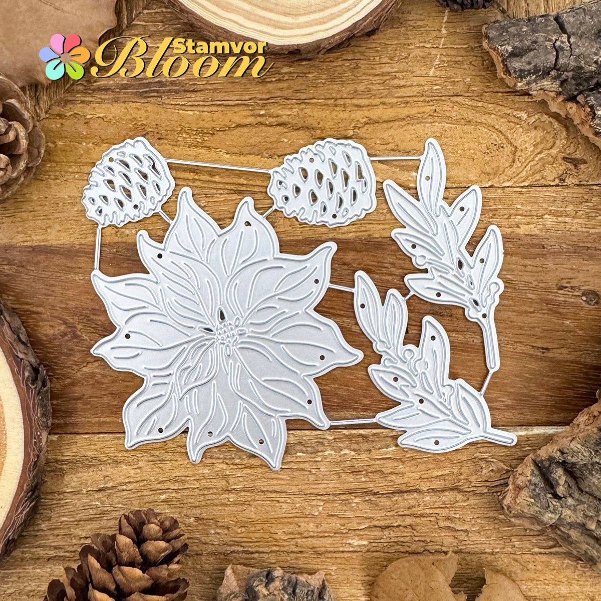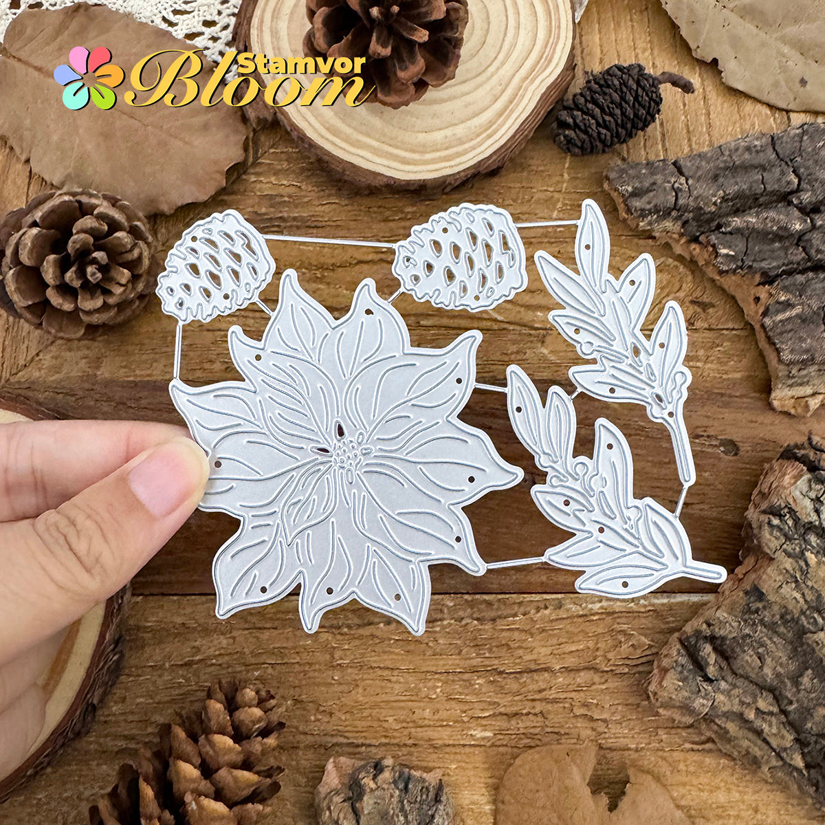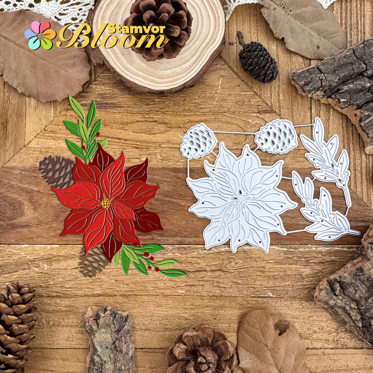 Cutting Dies. This die creates Original Lovely Beautiful Christmas Flowers and Leaves Branches Pines, allowing you to show your gratitude in thoughtful cards. With a high-quality steel design, it can cut through most paper, which will help you create beautiful crafts.