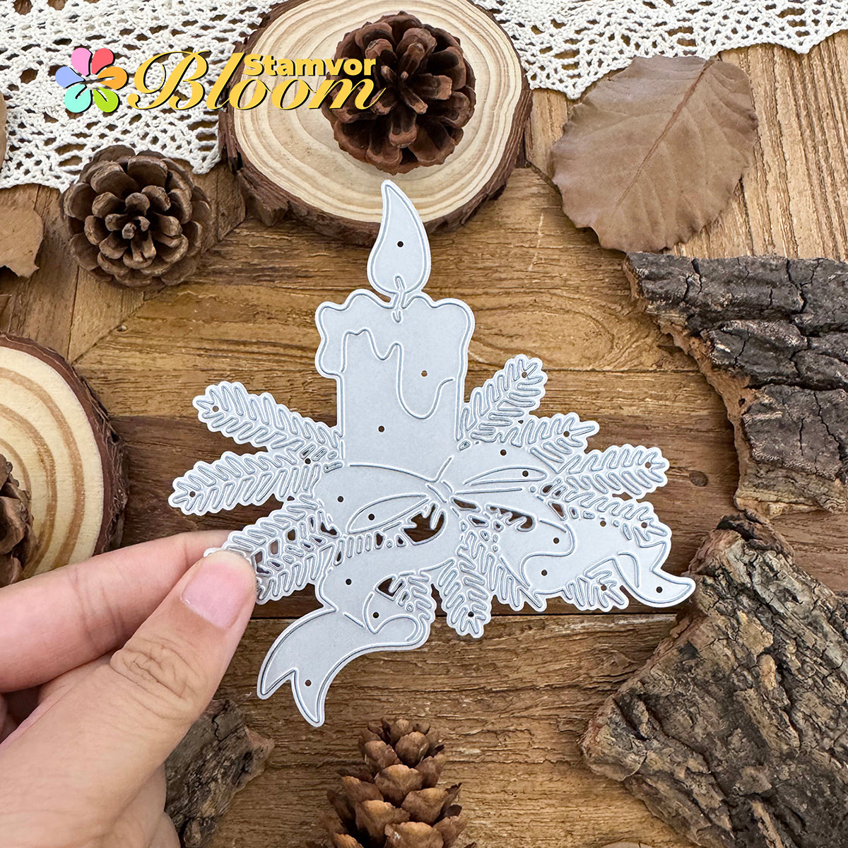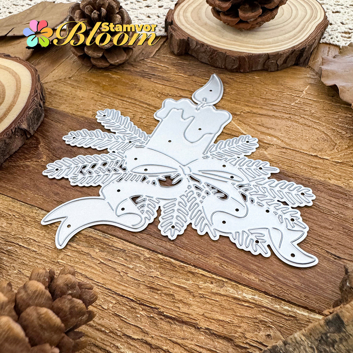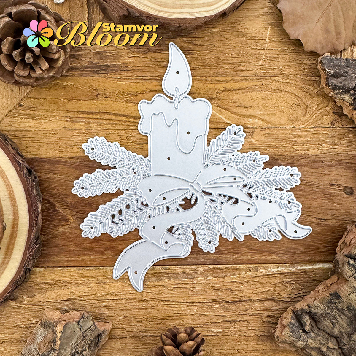 Cutting Dies. This die creates Original Lovely Christmas Candle with Pine Leaves Branches Bows, allowing you to show your gratitude in thoughtful cards. With a high-quality steel design, it can cut through most paper, which will help you create beautiful crafts.