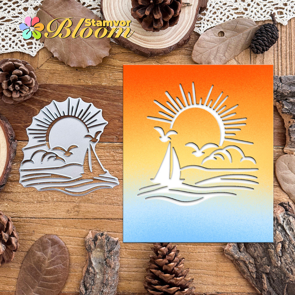 Cutting Dies. This die creates Original Lovely Ocean Sunset with Seagulls and Sailboat, allowing you to show your gratitude in thoughtful cards. With a high-quality steel design, it can cut through most paper, which will help you create beautiful crafts.