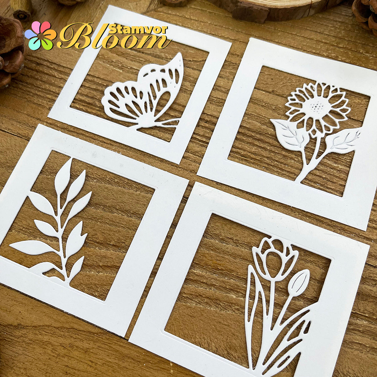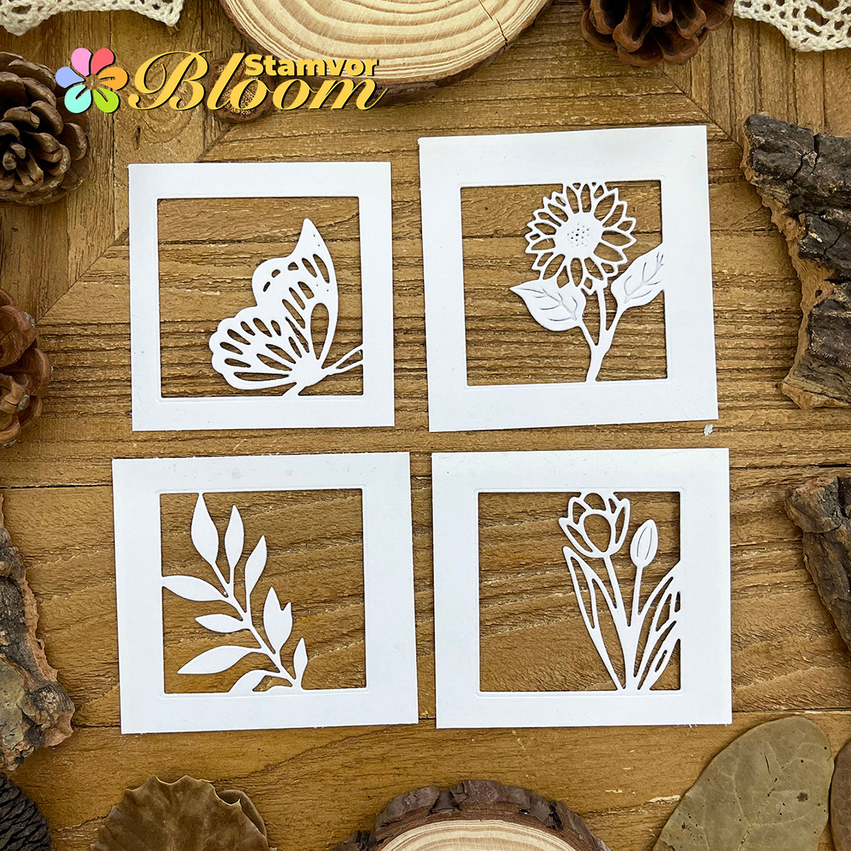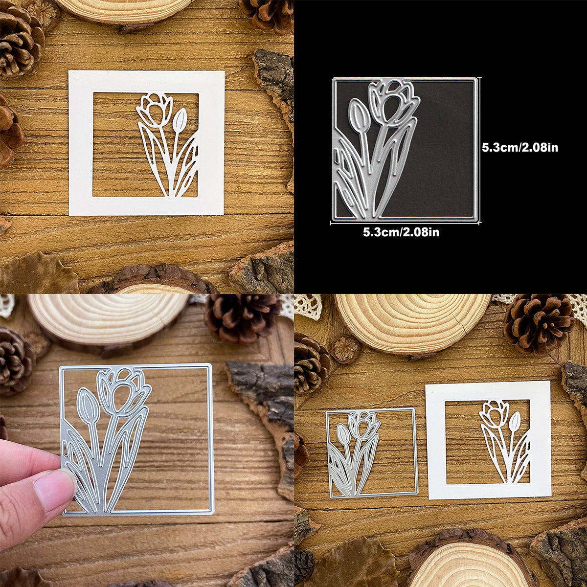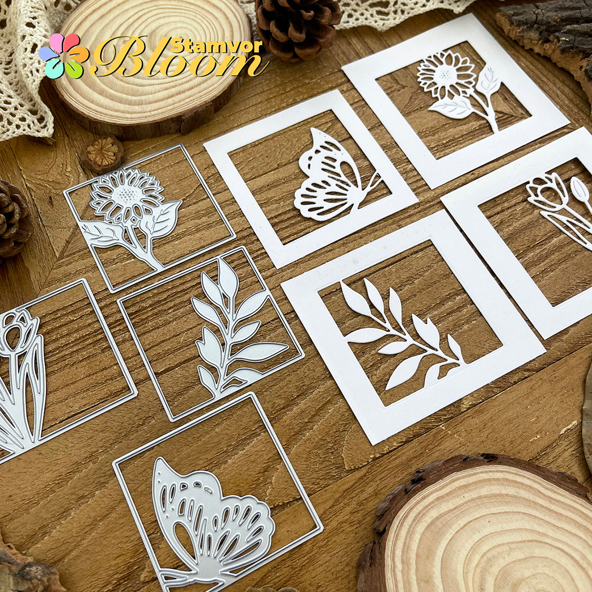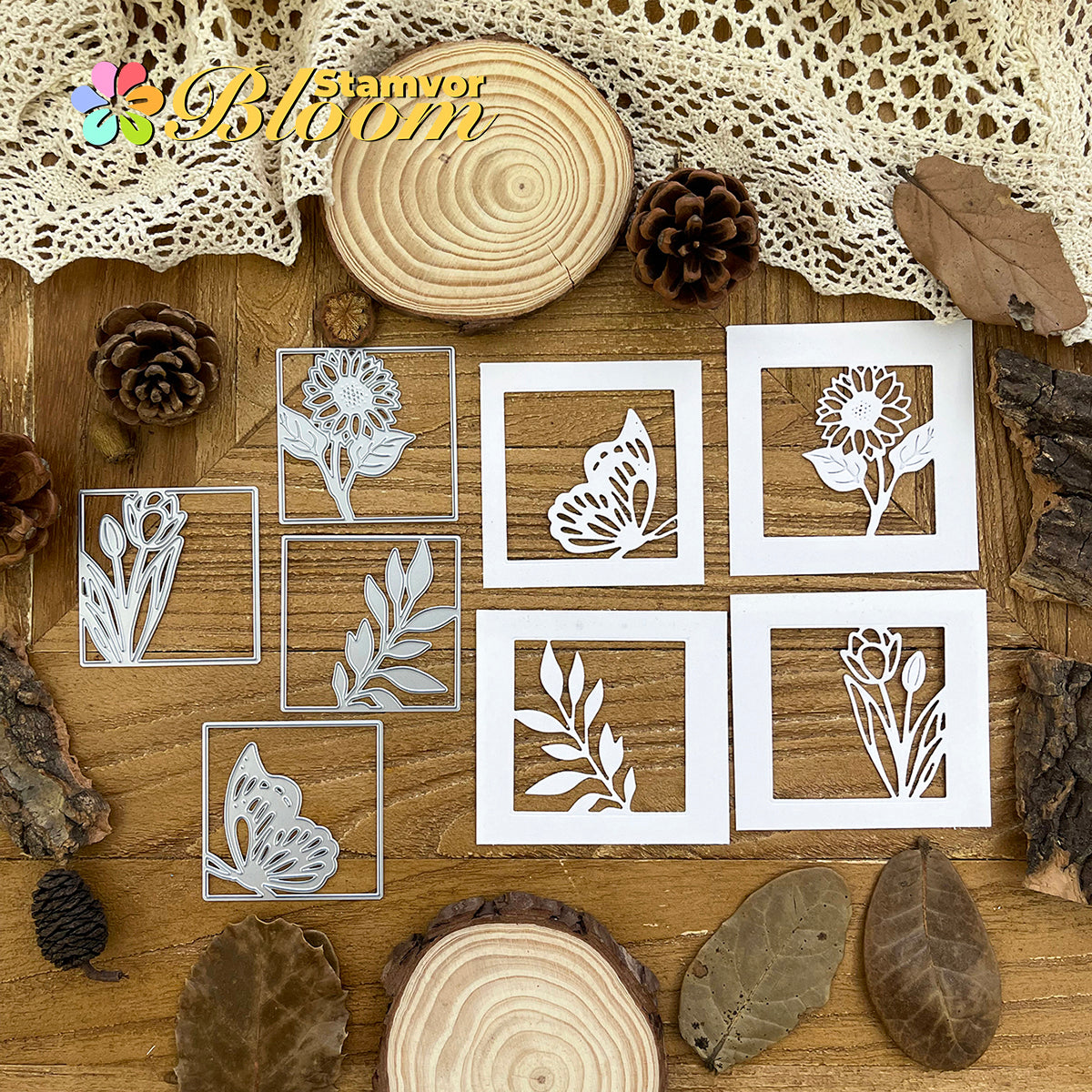 Cutting Dies. This die creates Beautiful Sunflower Butterfly Tulip Leaves Square Frames, allowing you to show your gratitude in thoughtful cards. With a high-quality steel design, it can cut through most paper, which will help you create beautiful crafts.