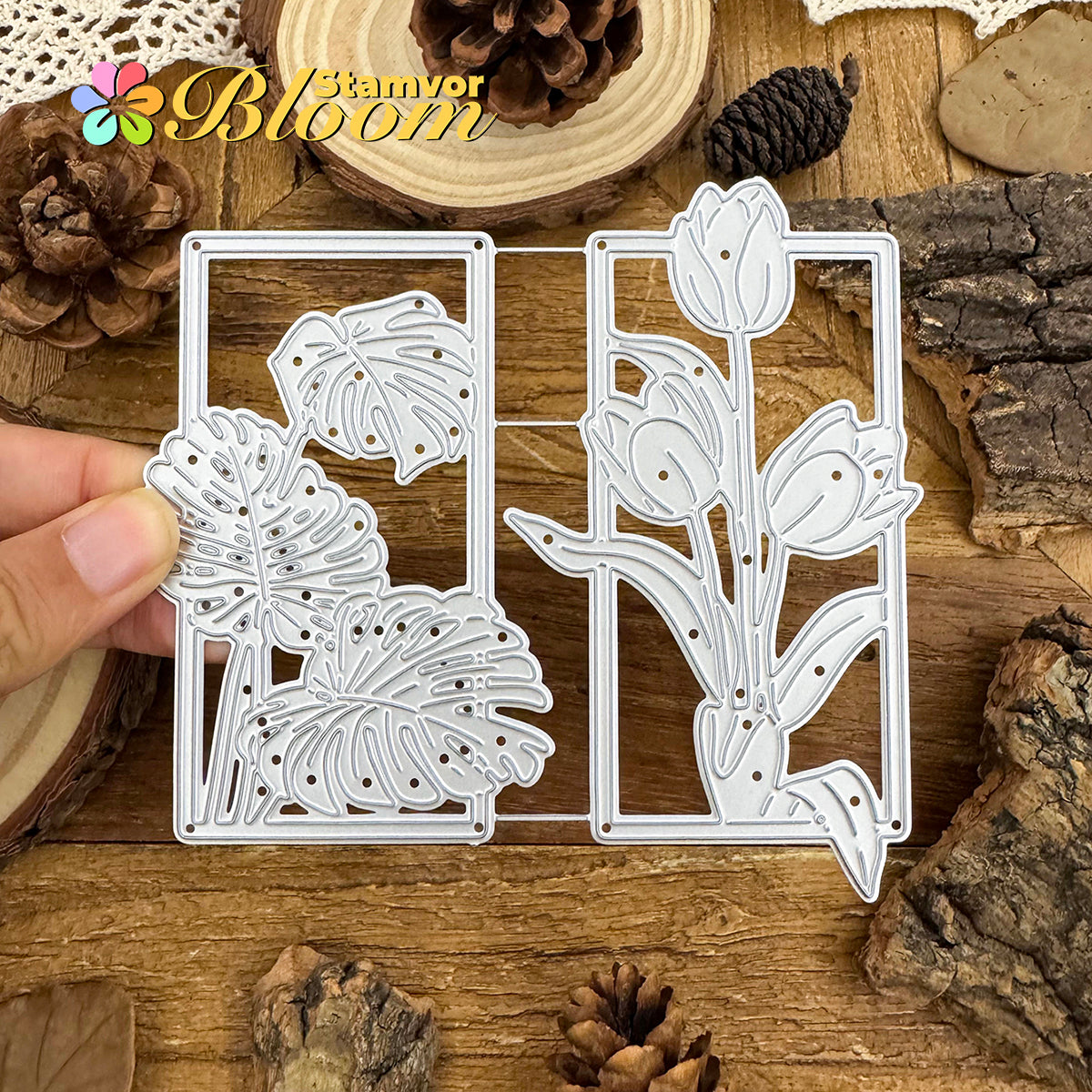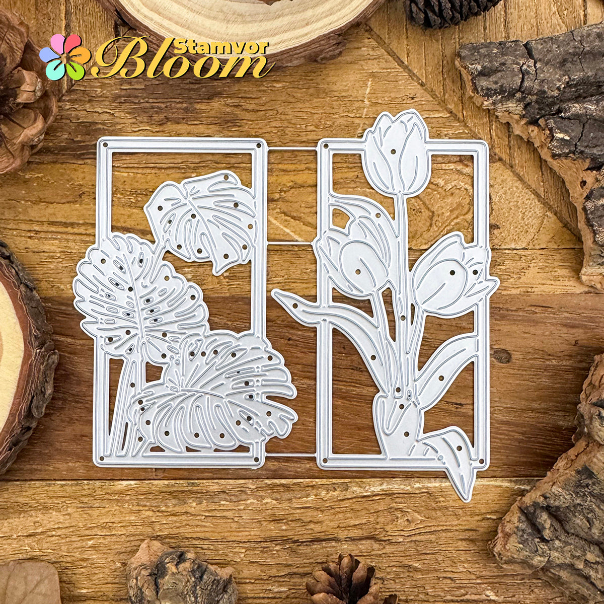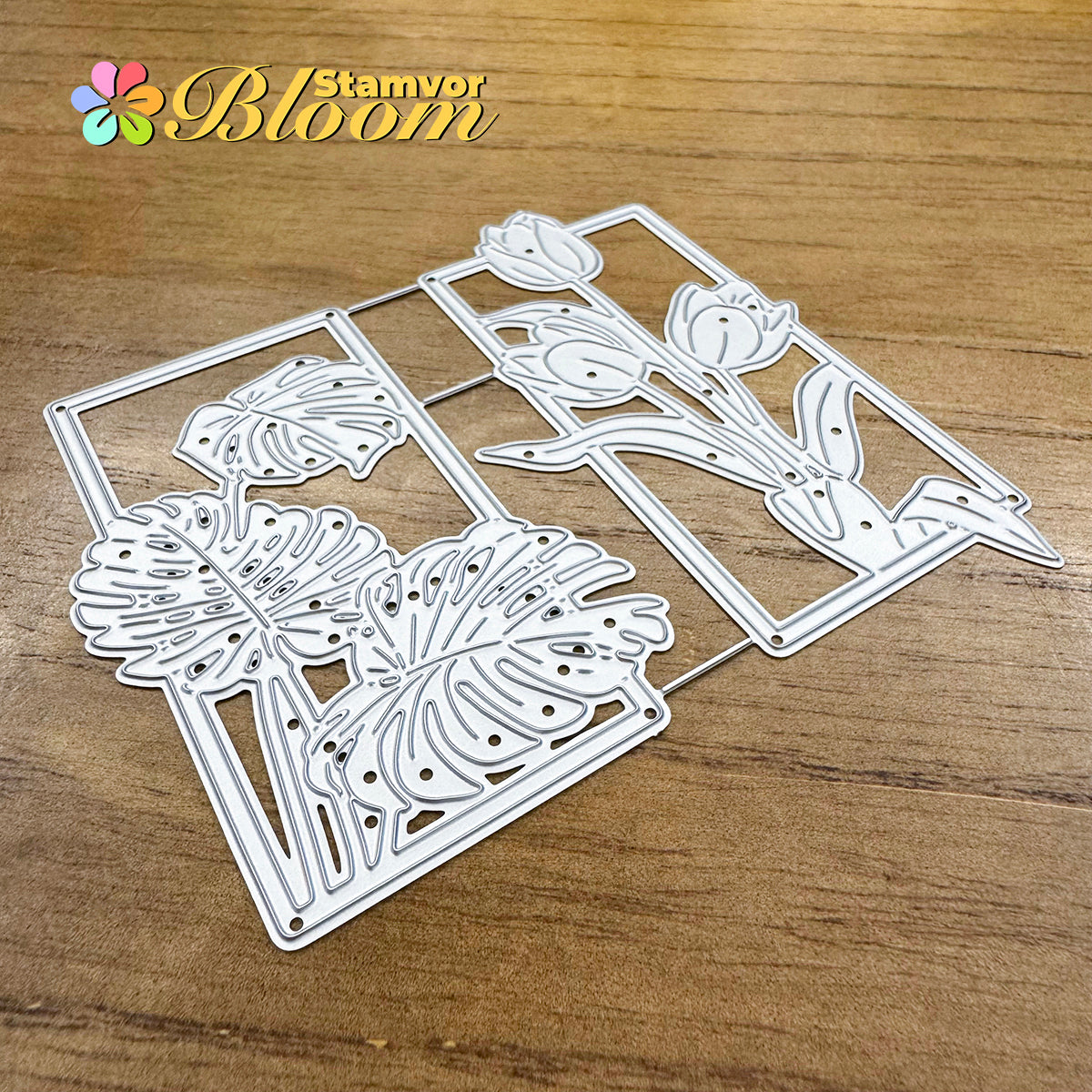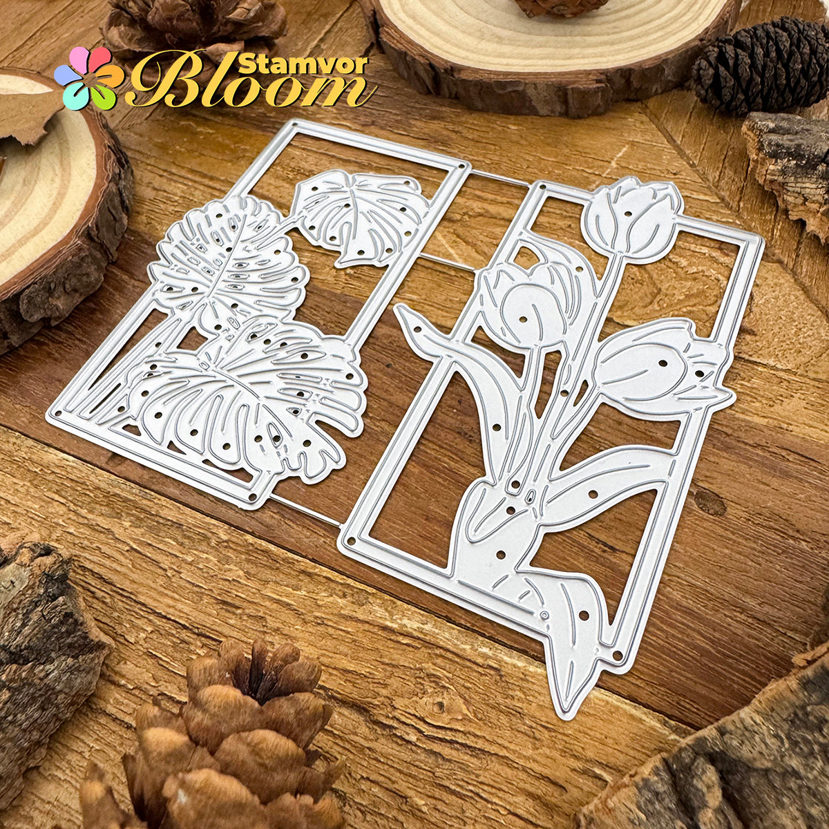 Cutting Dies. This die creates Original Beautiful Flowers and Leaves Tulips Monstera Deliciosa Square Frames, allowing you to show your gratitude in thoughtful cards. With a high-quality steel design, it can cut through most paper, which will help you create beautiful crafts.