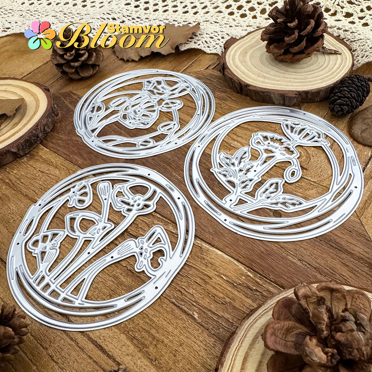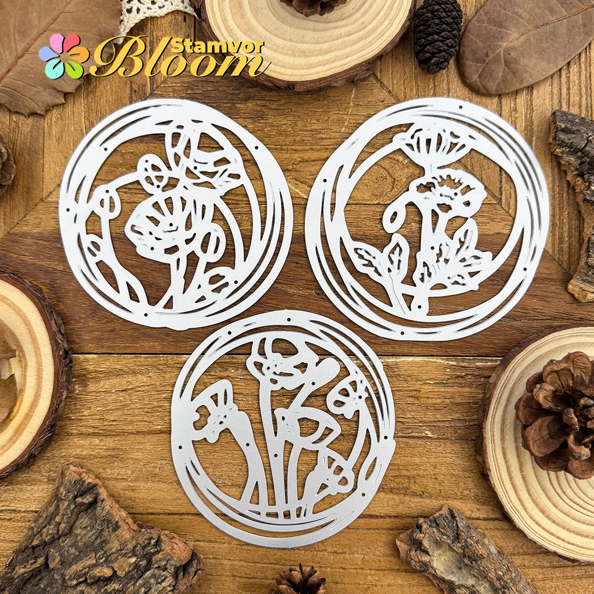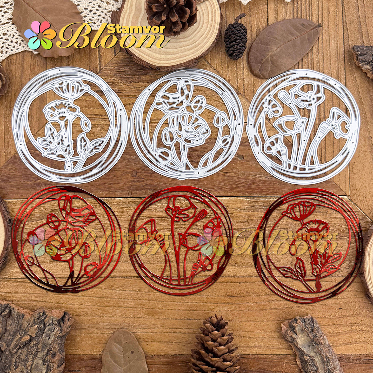 Original Lovely Flowers Poppies Lines Circlrs Cutting Dies