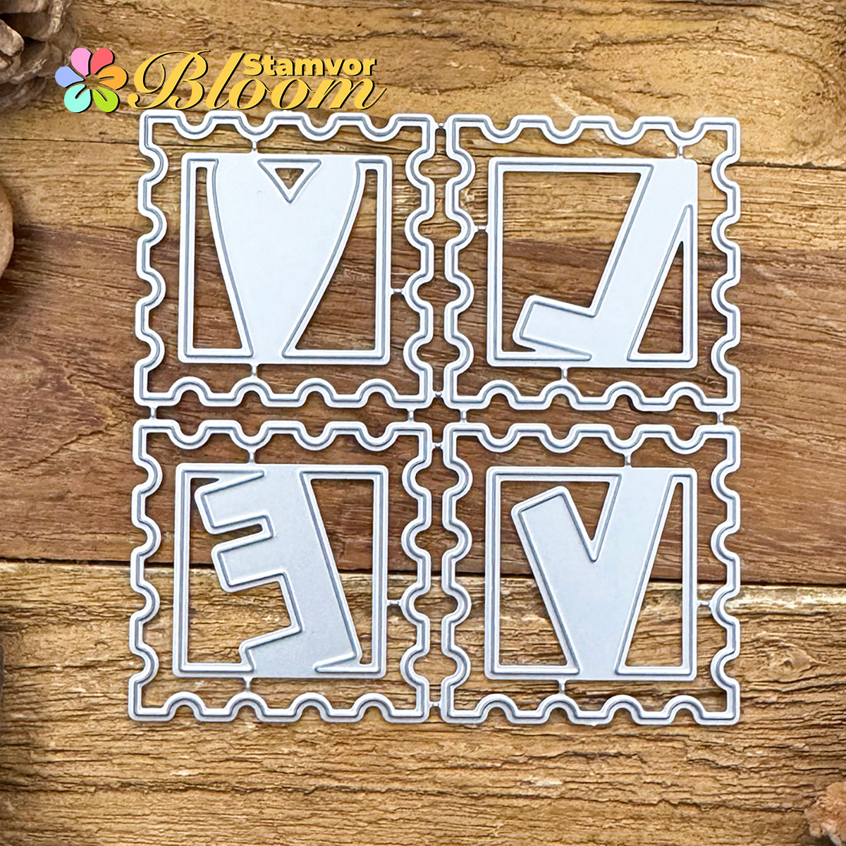 Cutting Dies. This die creates Original Lovely Valentine's Day LOVE Stamps Frames, allowing you to show your gratitude in thoughtful cards. With a high-quality steel design, it can cut through most paper, which will help you create beautiful crafts.